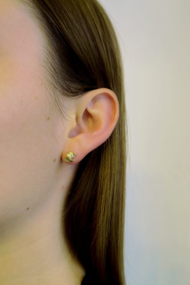 1920 Ørestikker S, 18 kt. Guld med diamanter