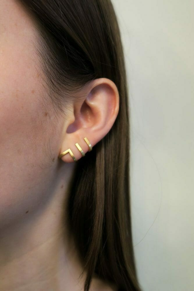 Øreringe fra BONDAGE KOLLEKTIONEN hylder kunsten i bindeteknikker. Med sit afsæt i fastgørelse og et underspillet sensuelt udtryk, smyger BONDAGE-øreringe sig om øret med et godt greb.