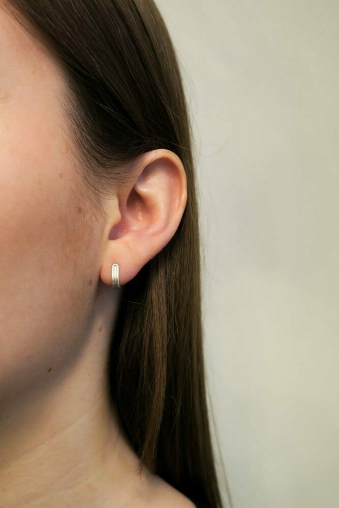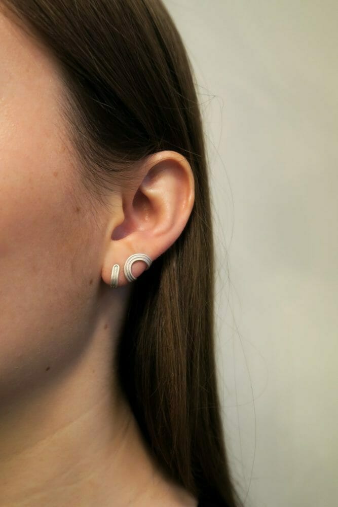 Øreringe fra BONDAGE KOLLEKTIONEN hylder kunsten i bindeteknikker. Med sit afsæt i fastgørelse og et underspillet sensuelt udtryk, smyger BONDAGE-øreringe sig om øret med et godt greb.